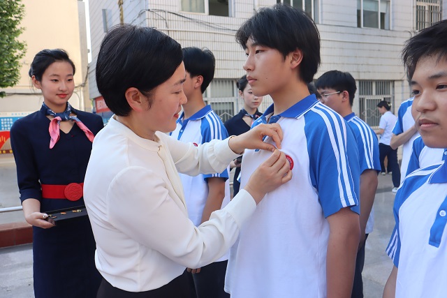 黨委副書記、校長魏萍宣讀了關于表彰2022-2023學年“三好學生”“校級獎學金”“優秀學生干部”的決定。黨委副書記、副校長張中華宣讀了關于表彰2023-2024學年“先進團支部”“優秀團干部”“優秀團員”的決定。校長助理楊永宏宣讀了發展張文昊等164名同學加入中國共產主義青年團的決定。校領導為受表彰的集體和個人頒發榮譽證書,為新團員佩戴團徽。